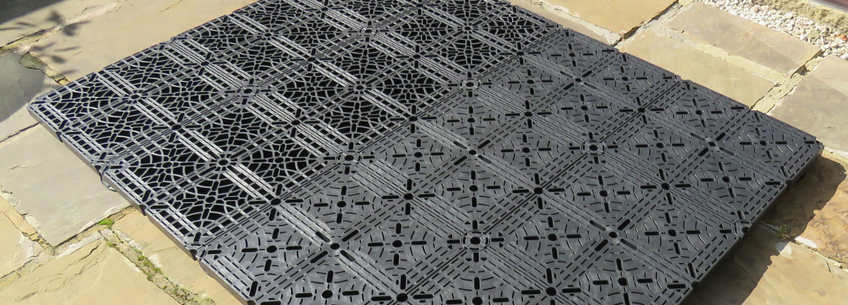 - Raised floating floors and walkways with tiled, or permeable surfaces